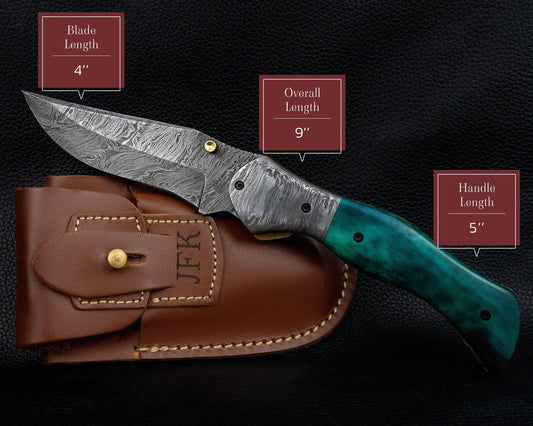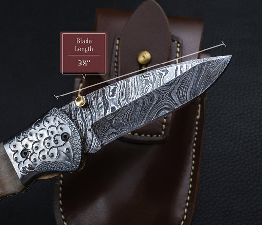 Damascus Pocket Knife - 6.5 Authentic Folding Damascus Blade