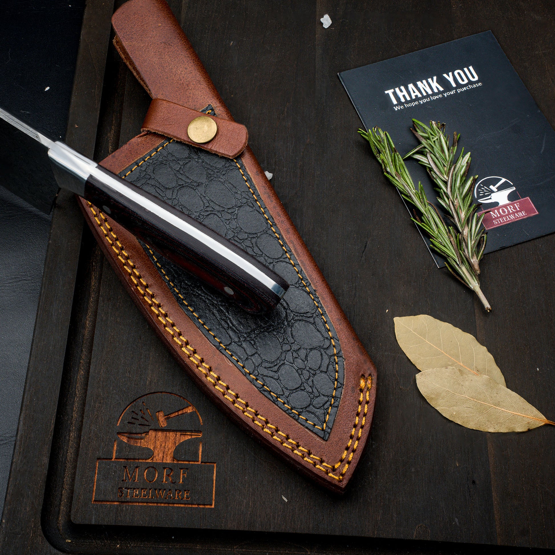 This chef kitchen knife is a true all-rounder, suitable for slicing delicate vegetables, chopping herbs, and even tackling larger cuts of meat. Its versatility makes it an indispensable tool in any kitchen or camping setup.