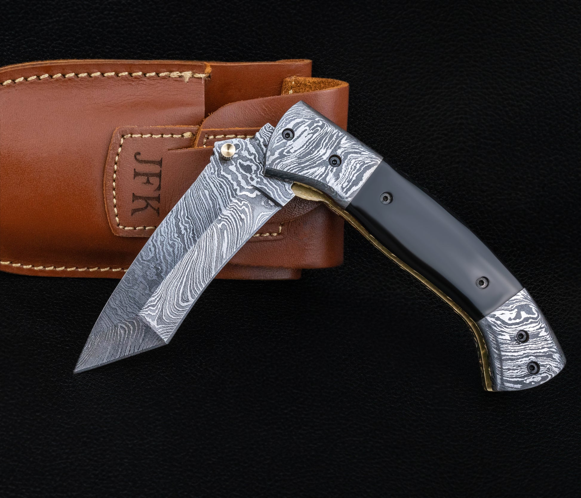 Color of this product: Silver Curved Blade, Full Damascus Folding Knife.