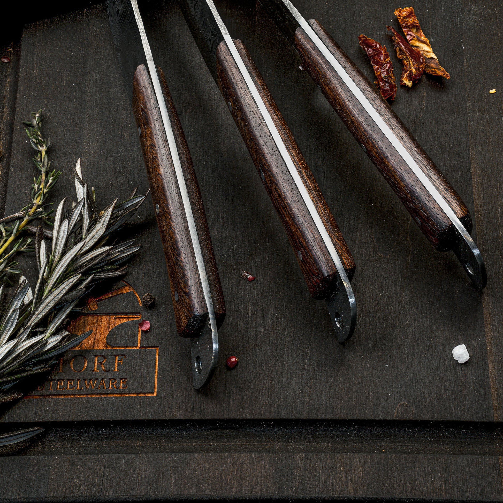 The ergonomic handles of these knives are made from luxurious rosewood, offering a comfortable grip and adding a touch of elegance to your culinary arsenal. The seamless fusion of functionality and beauty makes this set an ideal gift for dads who enjoy the art of cooking.