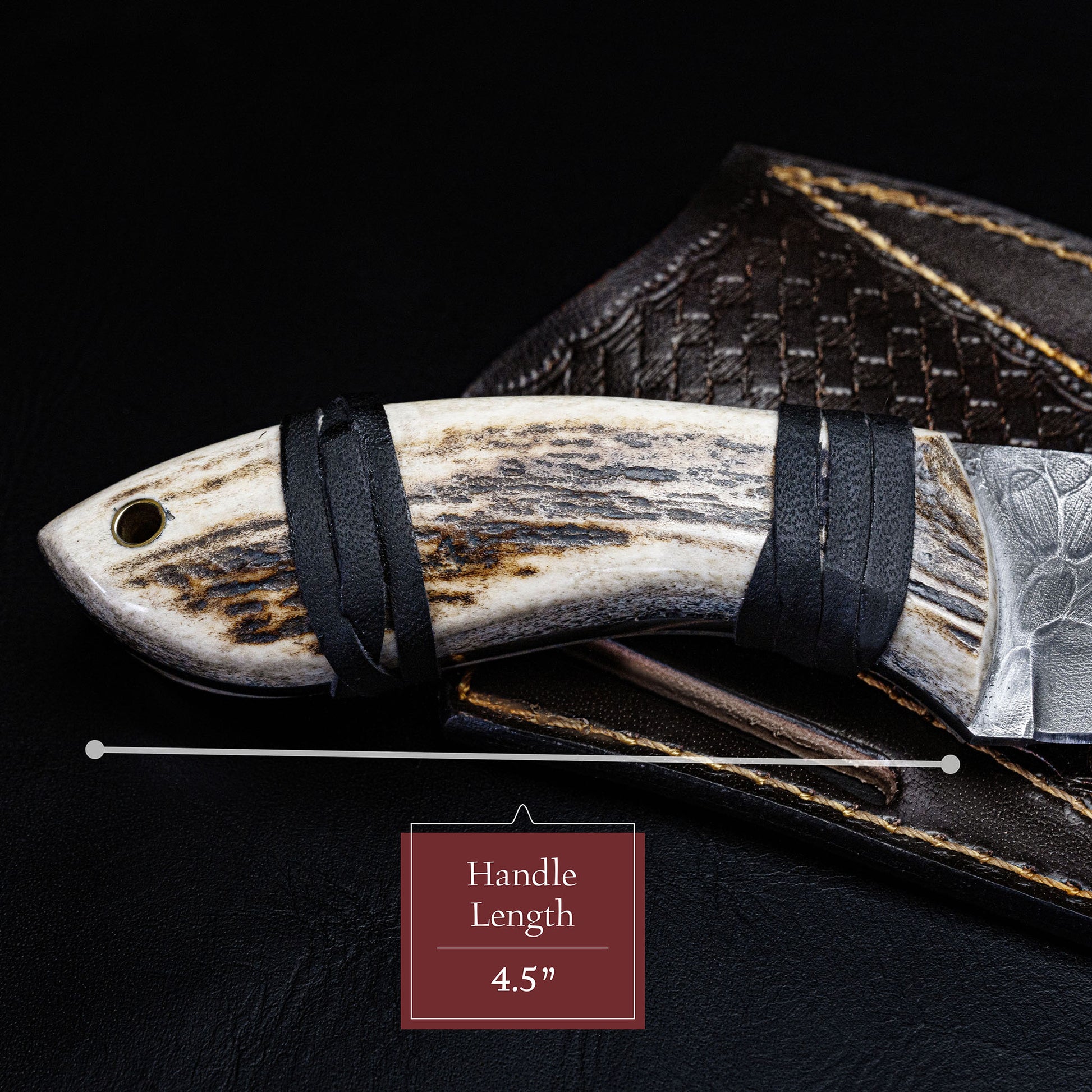 Note: As each knife is handmade, slight variations in the Stag Horn pattern and leather wrap may occur, making each piece truly unique.