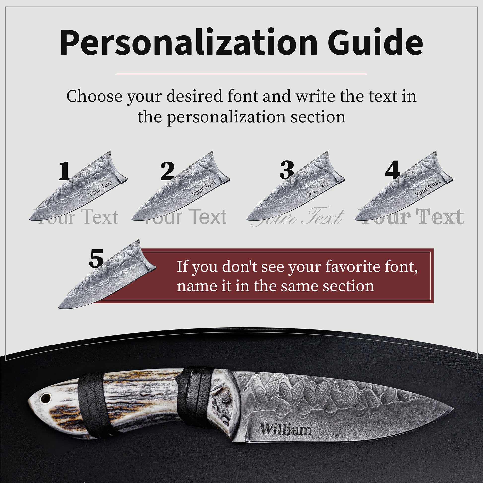 To add an extra touch of sophistication, we have carefully wrapped the handle with supple leather. The leather wrap not only enhances the knife's aesthetic appeal but also provides a secure grip, even in wet or challenging conditions. It ensures that the knife remains firmly in your hand, allowing you to tackle any hunting or outdoor adventure with confidence.